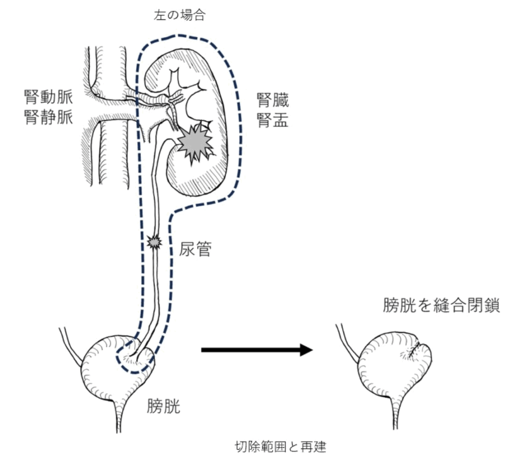 そのため、実際には腎尿管全摘除術が行われることが多いです。