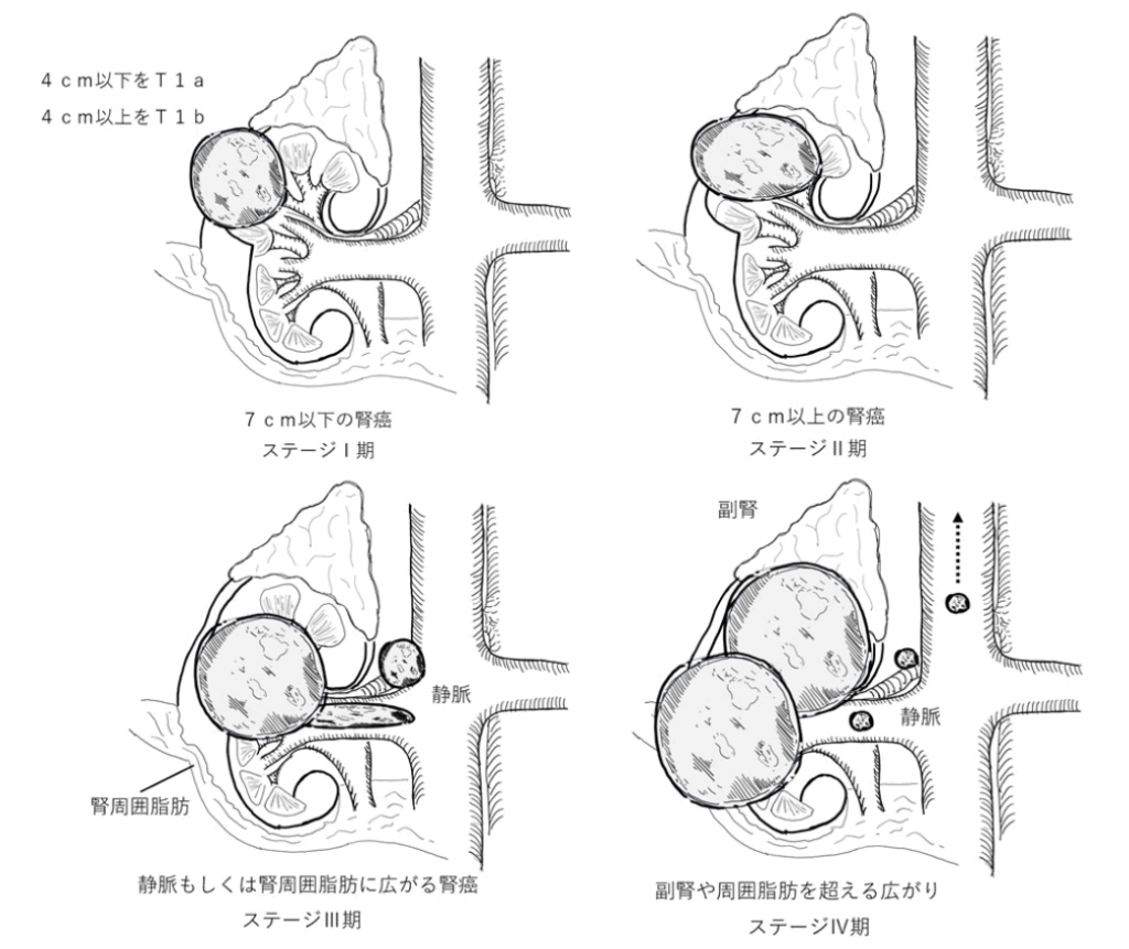 腎癌は進行すると腎臓におさまらず周囲の臓器に浸潤(癌細胞が直接臓器を蝕んでいくこと)したり、転移を生じます。腎癌が腎臓におさまっている場合には手術治療による根治的治療を選択することができます。