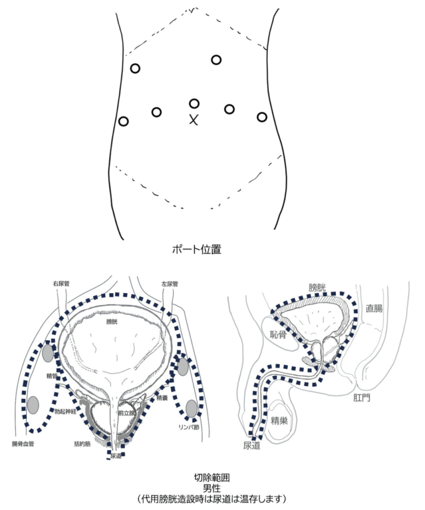 ①開腹手術や従来の鏡視下手術による膀胱全摘除術